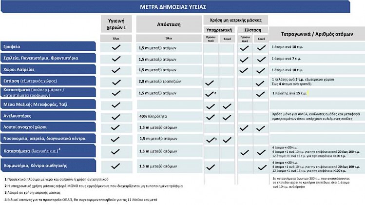 Η τήρηση των αποστάσεων, η υγιεινή των χεριών και η χρήση μάσκας αποτελούν το βασικό τρίπτυχο των μέτρων δημόσιας υγείας από τη Δευτέρα 4 Μαΐου 2020 και την έναρξη της σταδιακής άρσης των περιοριστικών μέτρων.