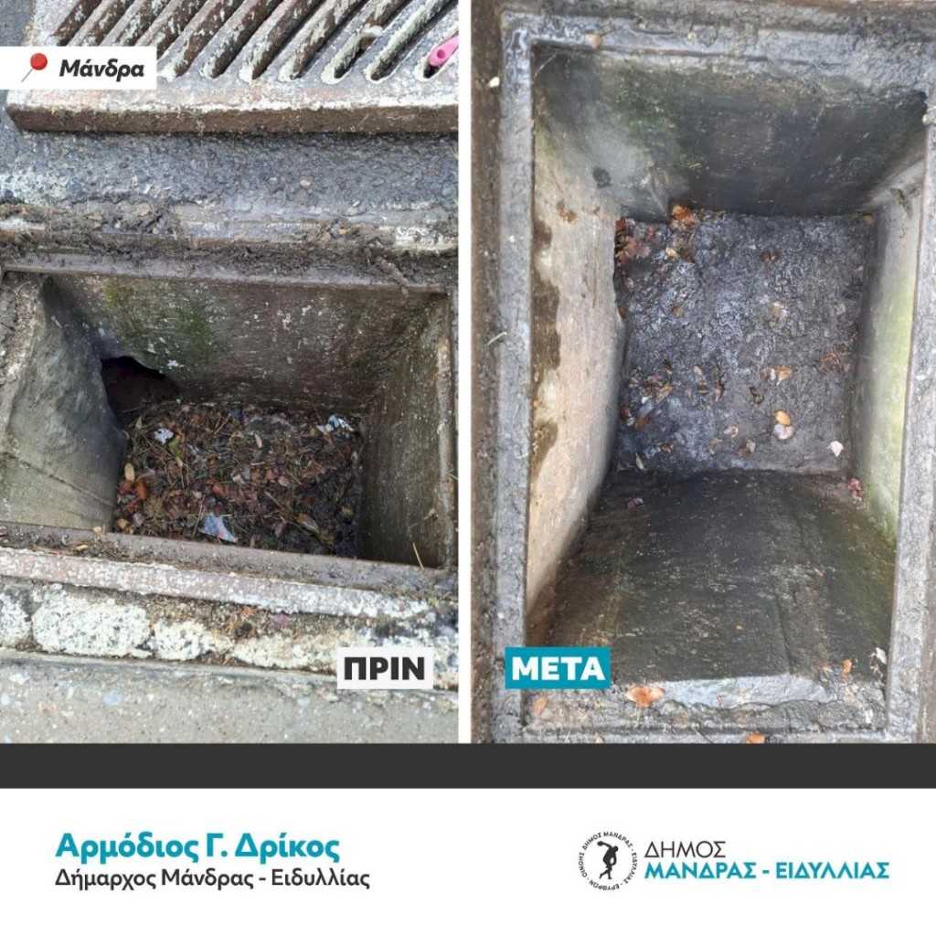 Δήμος Μάνδρας – Ειδυλλίας: Στην τελική ευθεία για την ολοκλήρωση του καθαρισμού των φρεατίων – Θωράκιση της πόλης πριν την επιδείνωση του καιρού