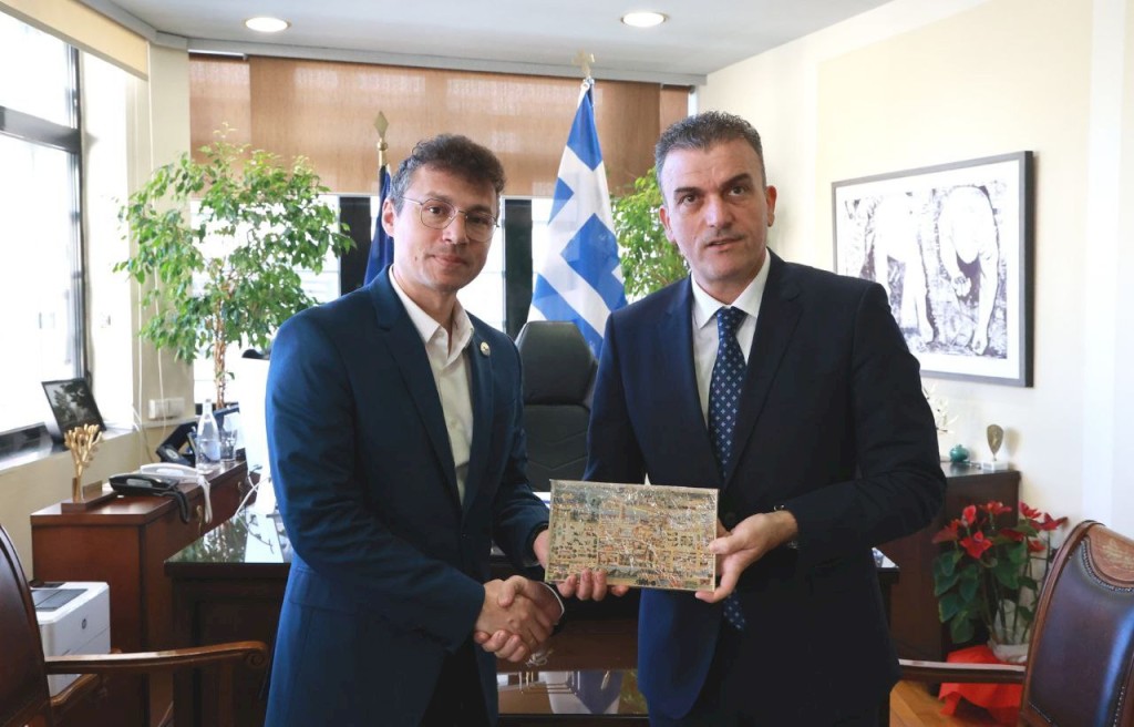 Στη συνέχεια, στο πλαίσιο της ενίσχυσης της διαδημοτικής συνεργασίας, ο Δήμαρχος επισκέφθηκε τη Λάρισα, όπου συναντήθηκε με τον Δήμαρχο Λαρισαίων Θανάση Μαμάκο. Συζητήθηκαν θέματα Τοπικής Αυτοδιοίκησης και δυνατότητες συνεργασιών σε εκπαιδευτικά και πολιτιστικά προγράμματα. Στη συνάντηση συμμετείχαν ο Γενικός Γραμματέας του Δήμου κ. Χρήστος Ηλίας, ο Αντιδήμαρχος κ. Μιχάλης Σακελλάρης και ο τεχνικός σύμβουλος κ. Δημήτρης Ραφτόπουλος. Οι δύο Δήμαρχοι συμφώνησαν να ανανεώσουν τη συνάντησή τους, επιβεβαιώνοντας τη βούληση για ουσιαστική συνεργασία και κοινές πρωτοβουλίες.