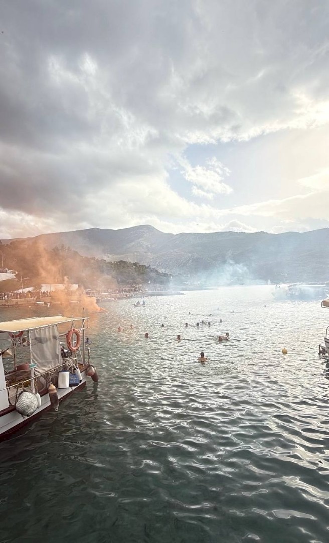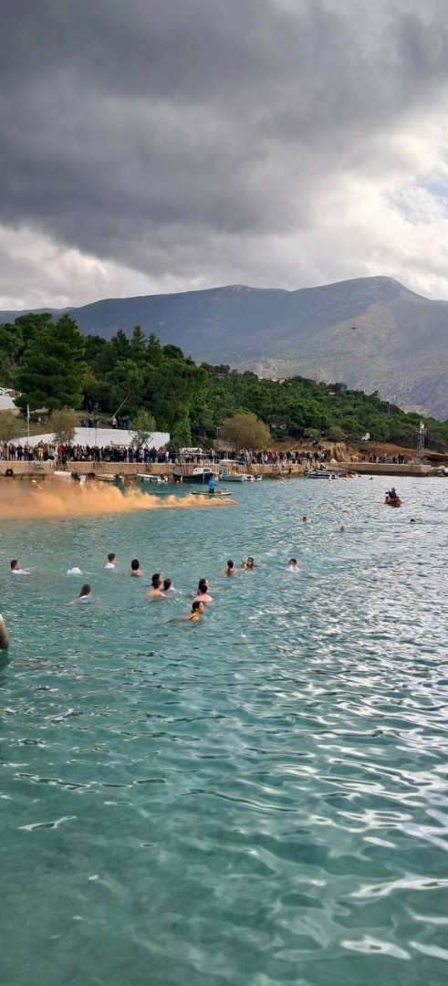 Ακολούθησε ο καθαγιασμός των υδάτων, με κεντρικό σημείο την πλατεία του Ι.Ν. Αγίων Κωνσταντίνου και Ελένης στη Μάνδρα, ενώ αντίστοιχες τελετές πραγματοποιήθηκαν στο λιμάνι του Αλεποχωρίου, στην Ψάθα και στο λιμάνι του Πόρτο-Γερμενού, σε ένα σκηνικό όπου το φυσικό τοπίο συναντούσε τη βαθιά πνευματικότητα της ημέρας.