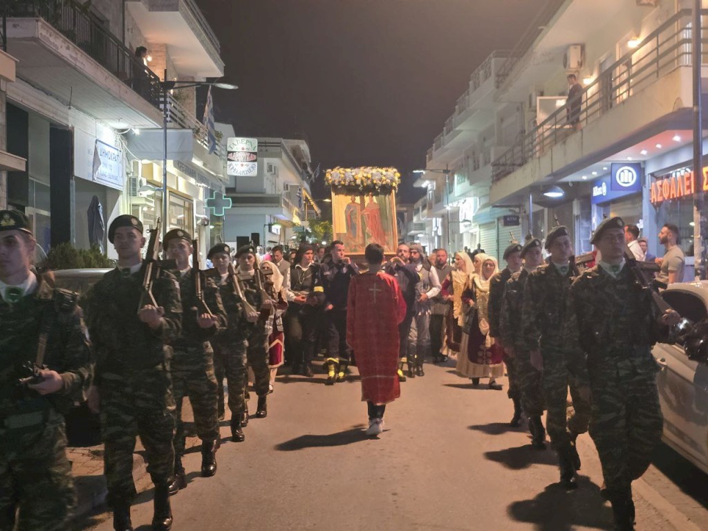 Μεγαλοπρεπής Εορτασμός των Πολιούχων Αγίων Κωνσταντίνου και Ελένης στη Μάνδρα – Τιμητικό Άγημα και Διπλή Φιλαρμονική πλαισίωσαν για πρώτη φορά την Ιερή Λιτανεία των Πολιούχων Κωνσταντίνου και Ελένης